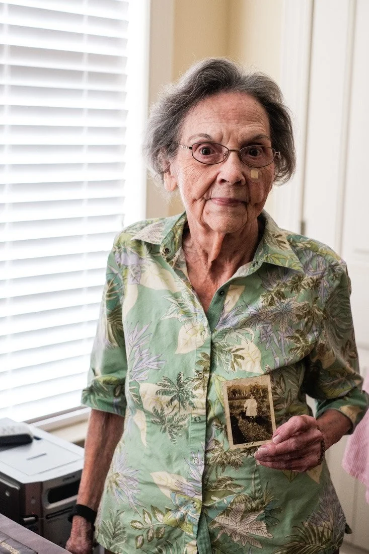 My grandmother, Minnie Lee Wemmer (2017) holding a photo of herself as a child sent to her in the mail by a long lost friend. It was the only photo she had of herself as a child.